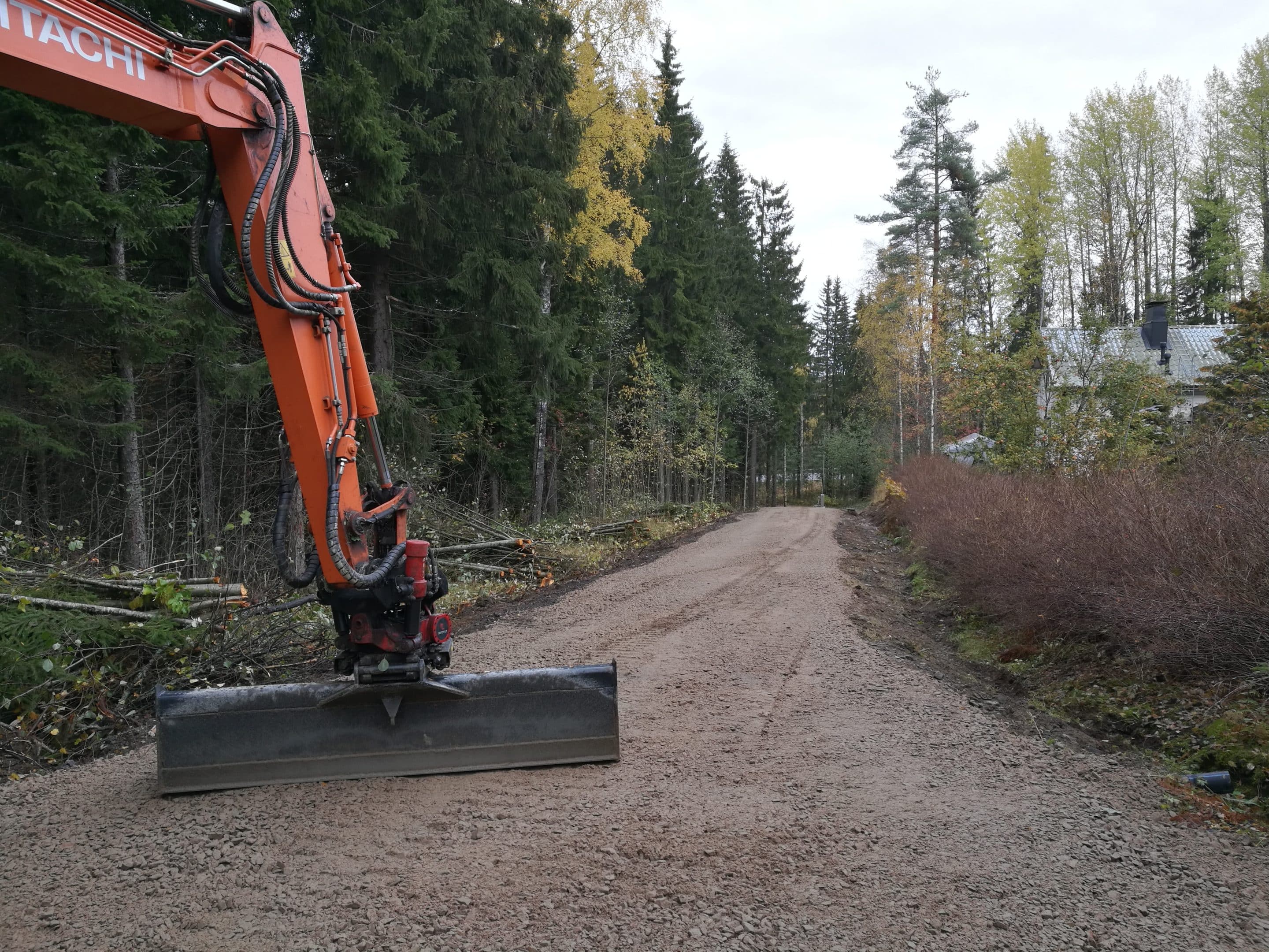 Urakointipalveluihin kuuluu myös sorateiden perusparannusten teko. Kalustona on käytössä 15 t kaivinkone ja traktori maansiirtoon. Pitkän kokemuksen ansiosta työt sujuvat varmasti ja aikataulussa.